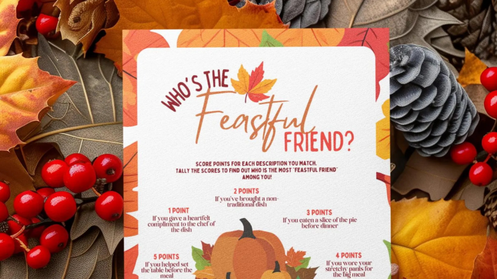 Make your Thanksgiving or Friendsgiving extra fun with Who’s the Feastful Friend? Compete with family and friends by tallying points for your holiday habits — from complimenting the chef to sneaking that extra slice of pie. At the end, crown the ultimate Feastful Friend!